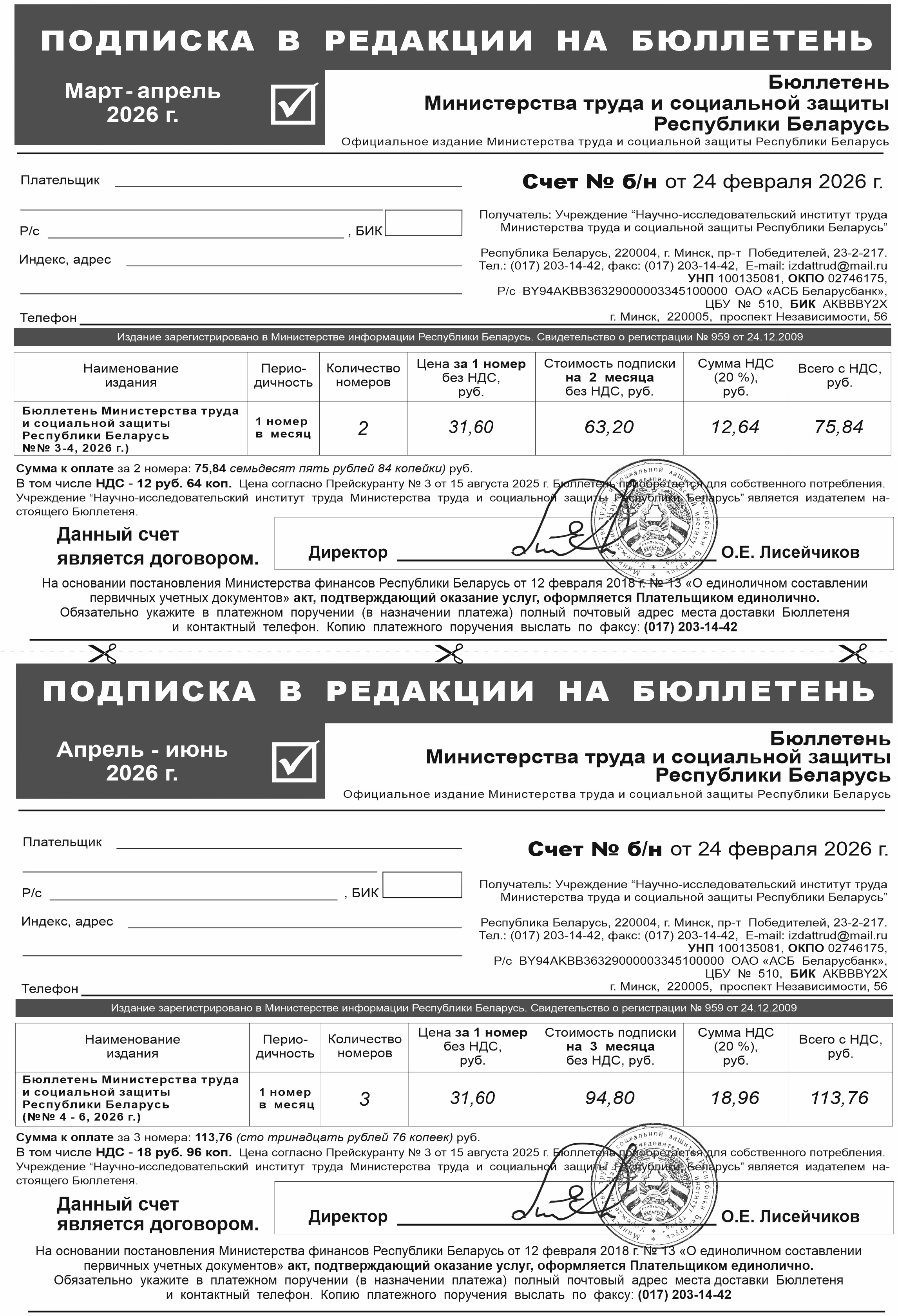 - в редакции журнала "Бюллетень Министерства труда и социальной защиты Республики Беларусь"